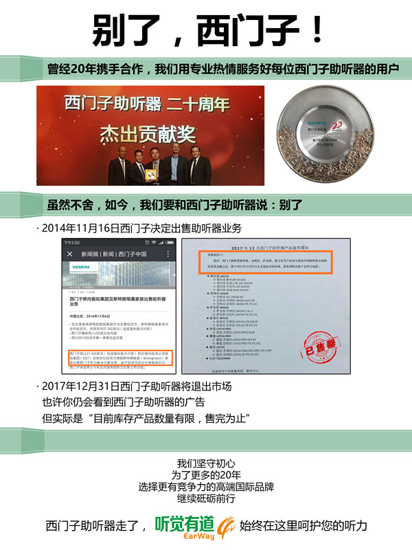 2017年12月31日西门子助听器将正式退出中国市场