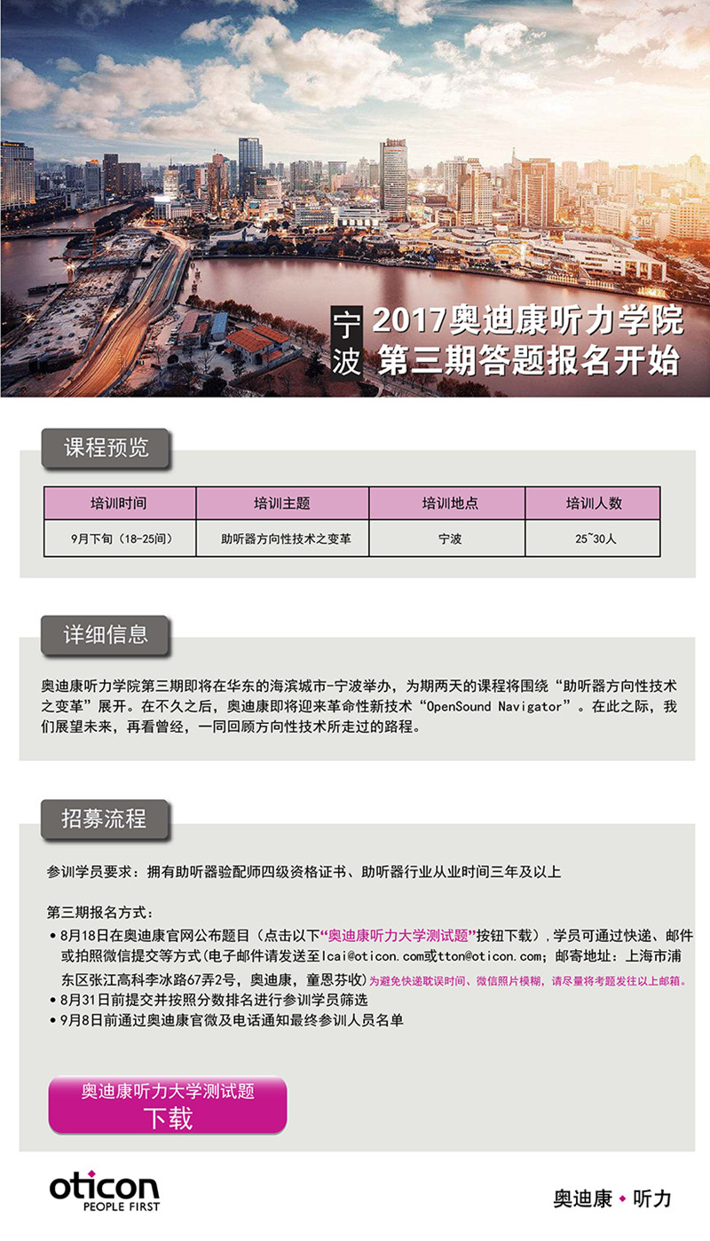 2017年度奥迪康听力学院第三期开始答题报名啦!