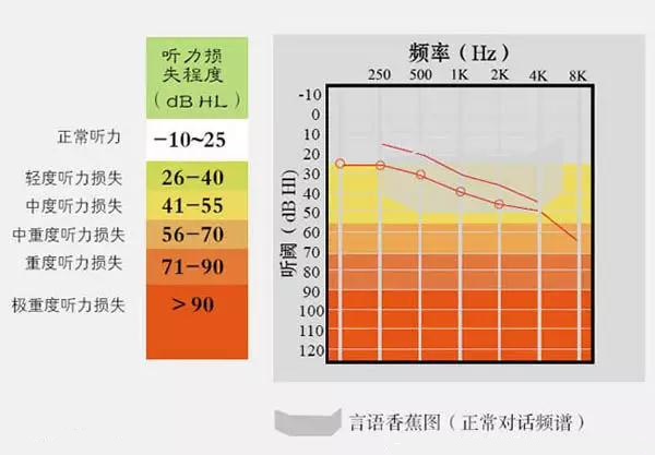 临床接受测试的人,多少都比正常年轻人要差点,即都存在听力损失,比0dBHL值要高。因此,临床上约定听力损失在25dBHL以内,都归为正常听力范围。临床上正常听力图可显示骨导听力在各频率范围中均为0~20dBHL,气导听力则在0~25dBHL,气、骨导间距为10dB以内
