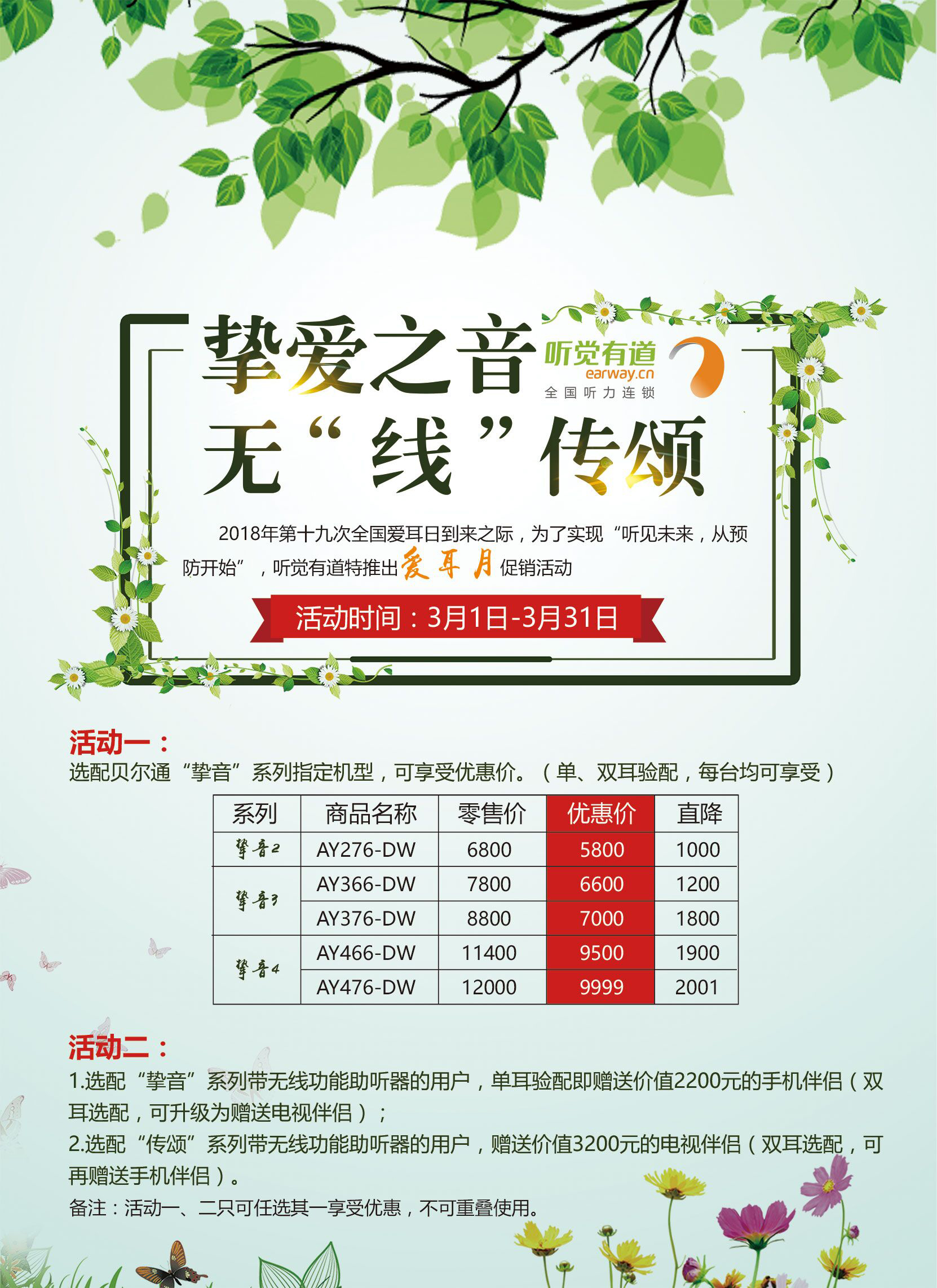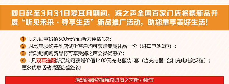 以下是第19次爱耳日各大品牌助听器商家开展的优惠活动,有需要选配助听器的听损朋友可以按照分享内容参考验配。