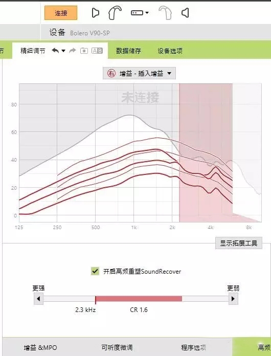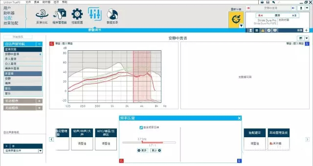 在奥迪康的验配软件,验配师可以降低高频增益,也可以把它在一个程序激活而不影响其他程序,然而所控制的参数在所有程序中都是一样,不能单独调试。