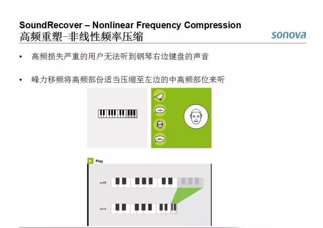 同样的一些环境音例如音乐、鸟叫、门铃声等等,把这些移动进入使用者可听的范围。对助听器使用者如果是高频陡降或者在高频只有一点听力亦或者高频没有听力的有意义。