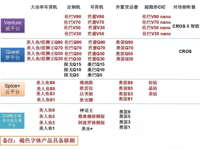 贝尔通、峰力、优利康、斯达克、瑞声达、西门子(西万拓)、奥迪康、唯听乃至一些二线品牌都有助听器的频率转移类技术,虽然它们名字略有区别,原理略有不同,但目的都是为了助听器效果更佳:
