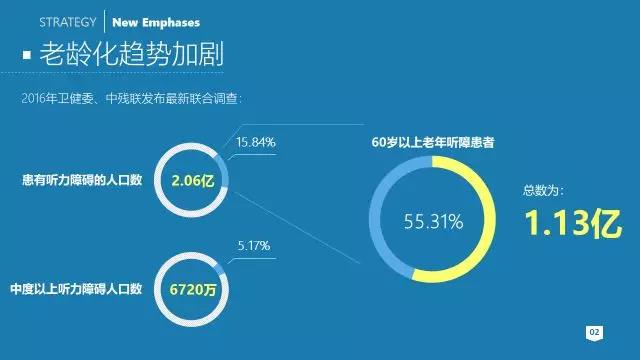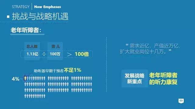因此,我国在继续加强听障儿童康复事业的同时,老年听障者的听力康复应该成为听力康复事业发展战略的新重点。