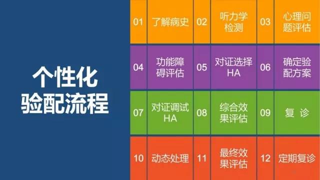 经过对近万名听障者助听器验配的实践,在 2015 年北京国际听力学大会上提出了个性化助听器验配流程。该流程的每个环节体现了我国听障者的特点和实际需求。流程设置的顺序和依据是功能性障碍主次排序和相互之间的关系。专家们认为,这是实现有效验配比较理想的流程。