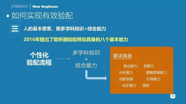 个性化助听器验配流程决定了验配师应具备多学科知识和综合能力两个基本要素。