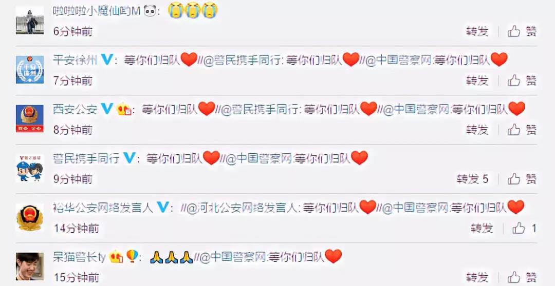 他们可能身处中国的各个角落,平时有各自的爱好,从事着不同的职业,跟我们一样,他们也都为两位辅警担忧过,祈祷过。