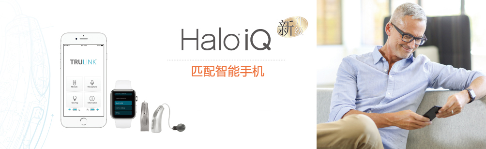 Halo(iQ)全新智能助听器结合TruLink应用程序匹配iPhone 获取轻松自然聆听体验,释放高保真音质,专享清晰聆听,交流自如,无惧嘈杂环境,轻松沟通,聆听舒适,将助听器无线直连iPhone手机,轻松接打电话,畅享音乐。