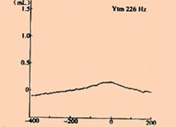 As型:峰值出现在-100~100daPa之间,但高度低于0.3mL,多见于镫骨固定。