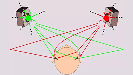 声音到达两侧耳所经历的路径是不同的。信息的交叉与混合出现于相对低级别的听觉系统。大脑利用双耳间的时间差、强度差、频率差和相位差来区别各种声音。虽然声音来自两侧,但正常听力的人们会感受到单一的整体声音。