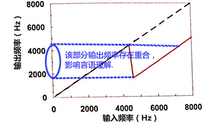 此方法带来的弊端在于:0~2000 Hz的声音无法降低,保持在原来频率范围;但对于一些2000Hz频率上下的声音,比如摩擦音,由于降低2000Hz后,频率变化明显,失真大,导致弱听人士无法听清楚。