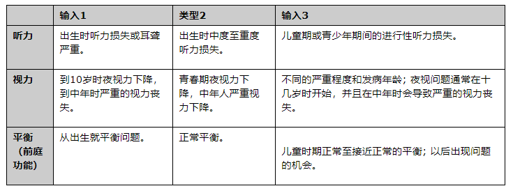 3型:3型Usher综合症患儿出生时听力正常。大多数人的平衡接近正常,接近正常,但有些人随着年龄的增长而出现平衡问 听力和视力的下降各不相同。患有3型Usher综合症的儿童经常在青春期发生听力损失,需要在成年中后期使用助听器。夜盲也通常在青春期开始。在十几岁到二十出头的时候出现了盲点。法律失明经常发生在中年。
