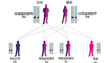 GJB2基因突变属于常染色体隐性遗传,这也就意味着两个携带该突变基因的正常父母有概率会生出一个患儿。