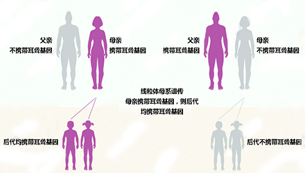 线粒体12SrRNA基因属于母系遗传。由于在受精卵时期,线粒体都来源于卵细胞,这也就意味着该遗传和父亲无关(无论父亲是否携带该突变基因),只要母亲是携带该突变基因的患者,就会遗传给后代。