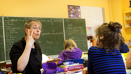 在参与交谈之前,先让孩子试着分辨各人的的声音。像听觉正常的人一样,注意讲话人,辅以唇读。如果孩子没有听清楚某句话,一定要让说话人重复一下。您还应让孩子明白偶尔没有听清某句话是很正常的,任何人都会有这种情况。