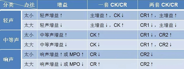 事实上,各企业的助听器软件往往可以直接调节轻声增益、中等声增益、大声增益与主增益而间接控制压缩参数,有的软件可见一套CK/CR,有的软件可见两套CK/CR。有些软件会自动默认为自适应压缩方式,能够根据声音强度差异自动调整。