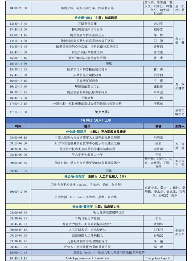 本次会议设人工听觉植入、助听器验配、前庭医学、听力学教育与康复、临床听力学、基础医学六个主题分会场,会议邀请了众多来自国际及国内知名专家分享本领域前沿进展和行业动态,就本领域的新理论、新技术和新方法进行深入探讨。