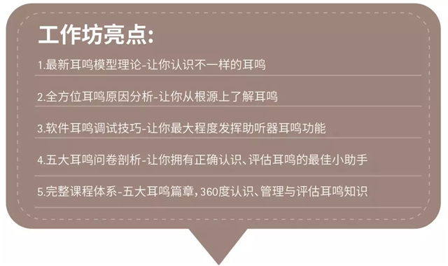 在9月5日~7日,中国康复医学会听力康复专业委员会将举办一个耳鸣工作坊,让大家对耳鸣有一个充足的认识。把它那神秘的面纱揭开,那么它就没那么可怕了。