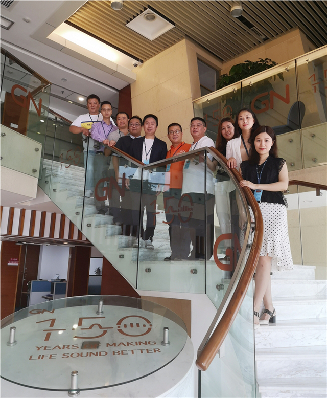 为更好地履行这一使命,2019年8月22日GN大部欧听力集团厦门全球生产基地迎来了听觉有道李久耕董事长及上海博音听力技术有限公司江显全总经理率队带领客服部、技术部、市场部等一行8位贵宾。到访贵宾们与GN全球生产总经理Mr.Carsten Dalgaard、GN大北欧听力集团销售部、产品制作部、生产部、研发部、品控部、客服部的相关负责人共同探讨了关于产品制作、质量优化提升、快速售后和满足客户个性化需求等议题。