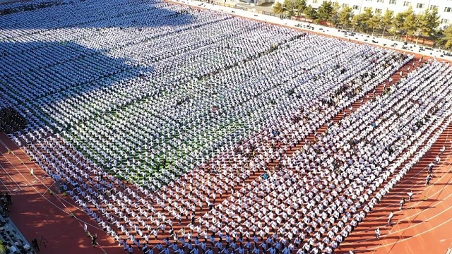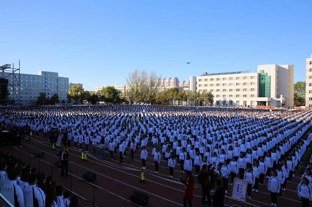 11月1日,长春大学万余名师生齐聚运动场用手语表演合唱《感恩的心》,用震撼人心的表达创造了最大规模手语表演吉尼斯世界纪录。