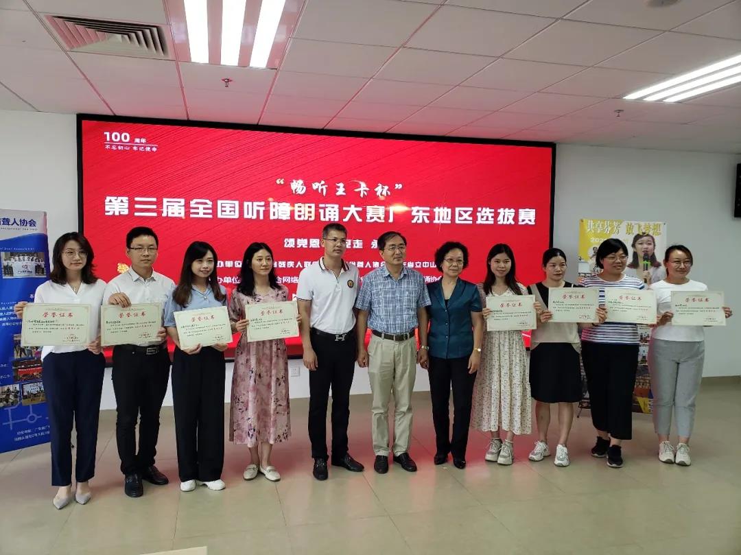 2021年5月16日,第三届全国听障朗诵大赛广东地区选拔赛在广东省残疾人辅具资源中心正式开赛。本次赛事由广东省聋人协会秘书长、资深编导张红玲老师,广东省朗诵协会常务理事许玲老师等朗诵专家担任大赛评委,广东省聋人协会会长范宜涛等嘉宾及60余名观众共同见证本次盛事。大赛得到了社会各界关注和支持,为让选手以最佳状态出赛,广东听觉有道企业管理有限公司组织了一批资深验配师队伍为选手提供辅具保障服务,广东狮子会组织了一支医疗小组为大赛提供应急医疗保障,大赛由广州音书科技有限公司提供速记字幕支持。广东省聋人协会视频号对大赛进行了现场直播。