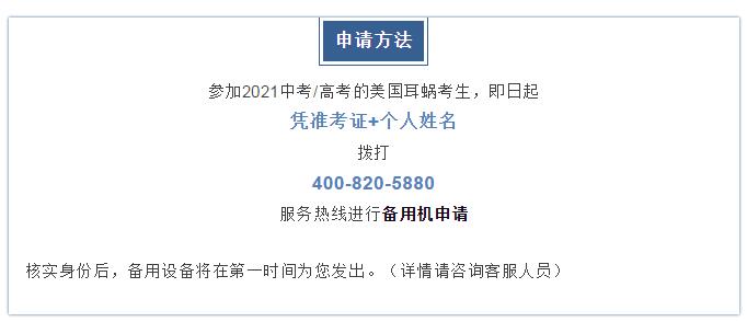 为了让用户考生能够无忧参加考试,美国耳蜗将一如既往地向耳蜗考生提供备用机免费外借服务,为大家保驾护航。