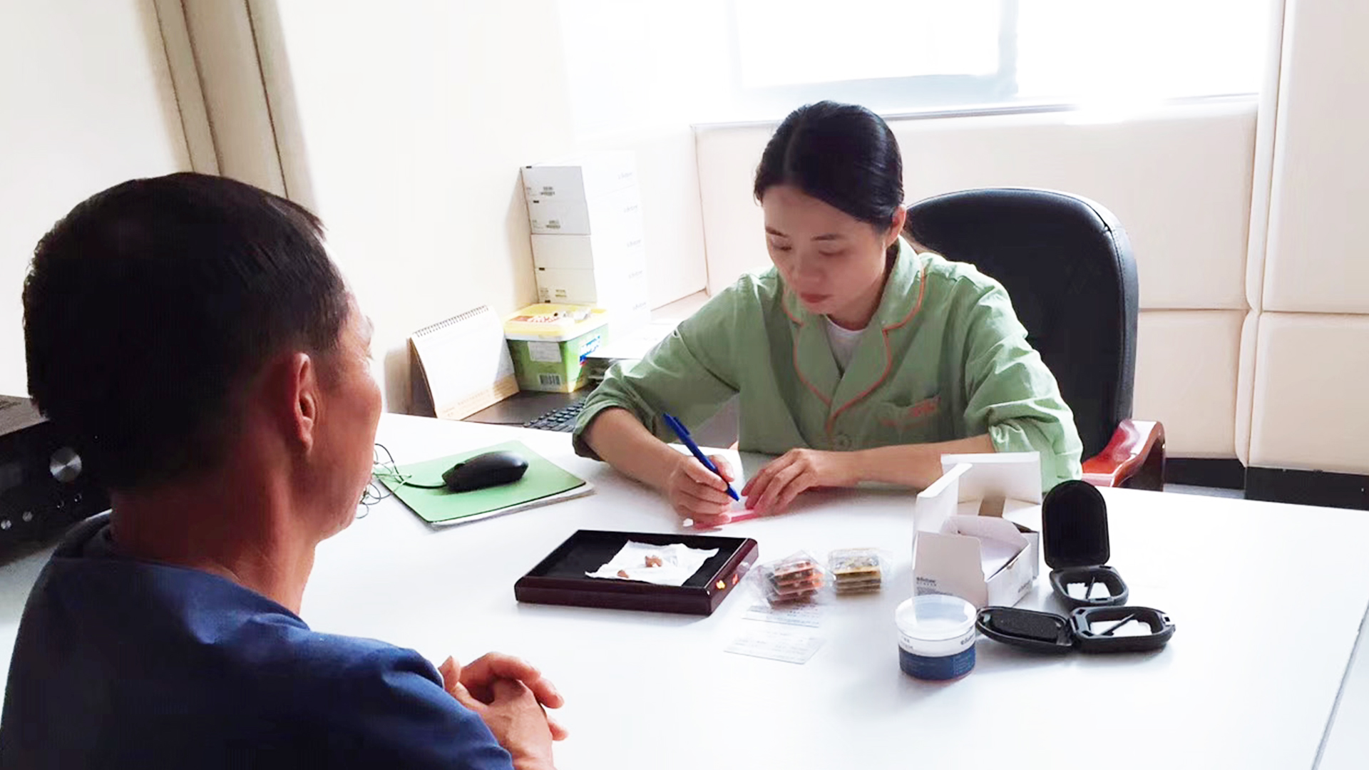 当时我家在门店附近,面试时我小心地问道:“如果过来上班,在不影响工作前提下,我有时可能要离开一小会儿,这个能够接受吗?”面试我的是李董,他表示很能理解我的处境。也许是缘分,从此我的人生关键词多了“助听器”这三个字。