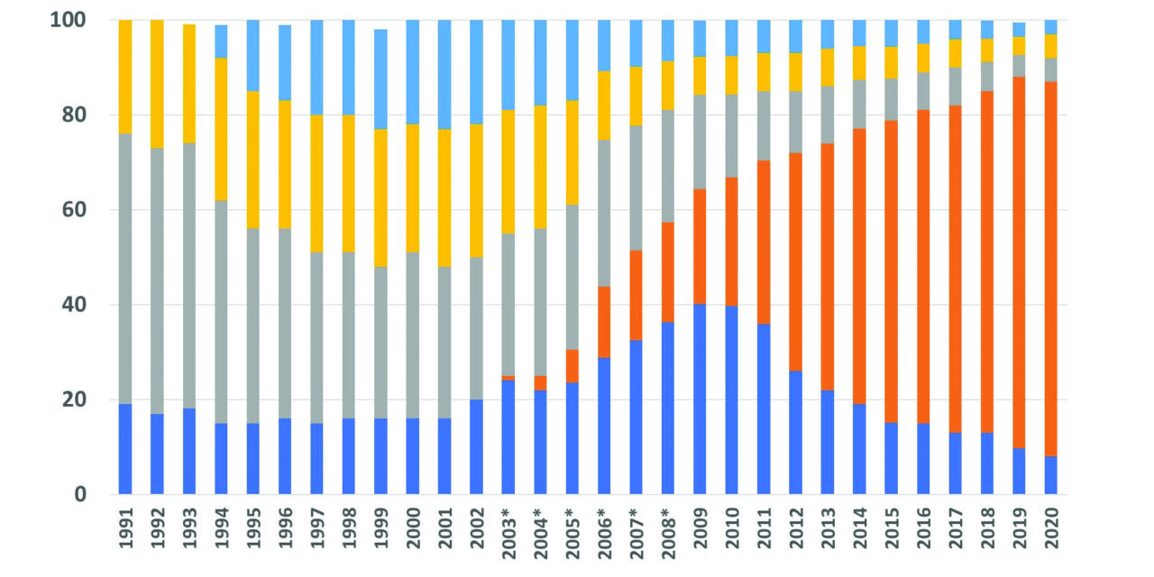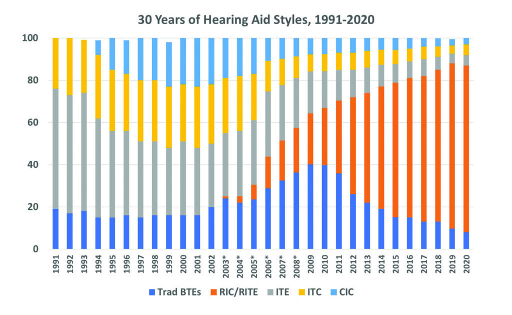 近日,国外HearingReview网站公布了一篇文章,讲述近30年美国助听器款式的市场趋势。