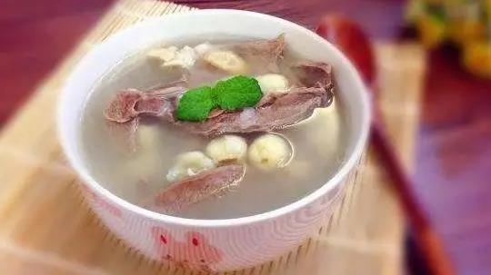 材料:茯苓15g、淮山药15g、芡实15g、莲子15g、猪脊骨500g、生姜3片、蜜枣2个。
